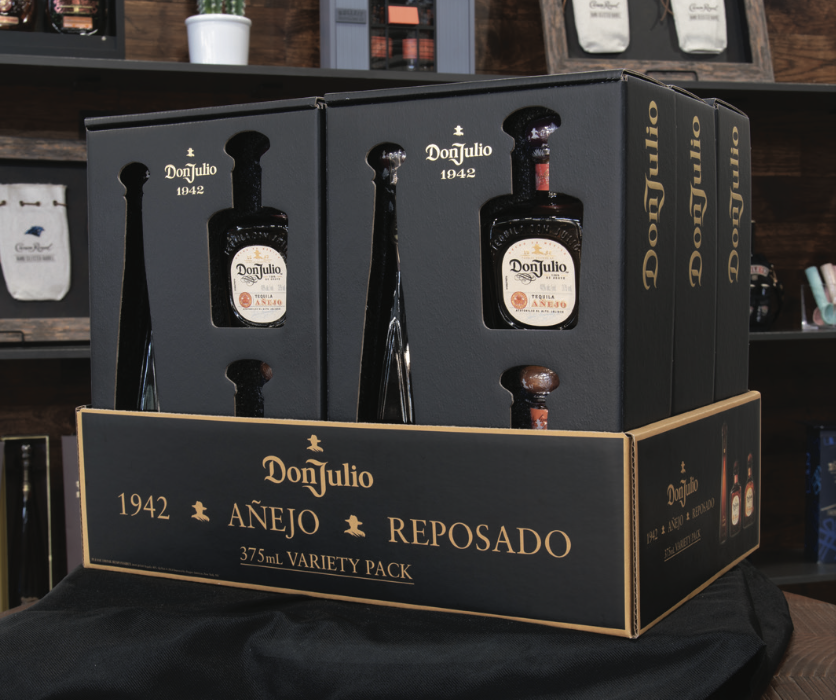 WILD produced a custom 375 ml 3-pack Value Added Packaging (VAP) for Don Julio. This VAP features custom embossed texture, gold embossed foil, and custom die cuts for the cover and foam insert. Wild also created and produced 30,000 units of matching tray packs for the VAP that is featured in Costco's located in the western states.